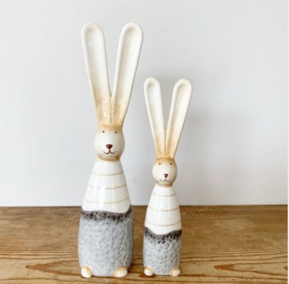 A charming and unique ceramic bunny decoration, complete with a rustic and textured finish.